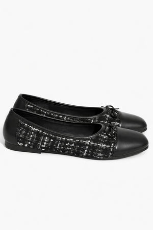 Step into refined style with Walk in Me, where elegance meets everyday comfort. These beautifully crafted flats combine a premium tweed texture with a sleek leather look toe cap, creating a timeless design that complements both professional and casual outfits. Perfect for modern women who appreciate style, quality, and comfort in every step.