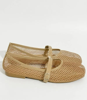 Experience effortless elegance with the Mesh Ballet by Walk in Me. Designed with a breathable mesh upper and a graceful Mary Jane strap, these flats combine modern style with everyday comfort. The soft beige tone adds a refined and versatile touch, making them perfect for both casual and semi-formal occasions.