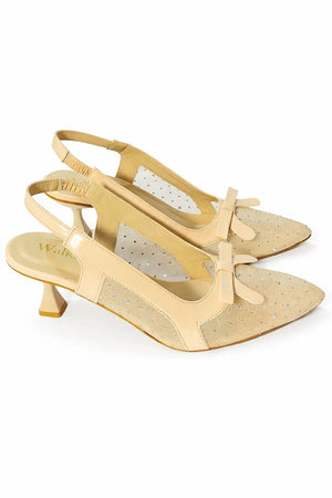 - Stylish slingback design with a chic bow accent